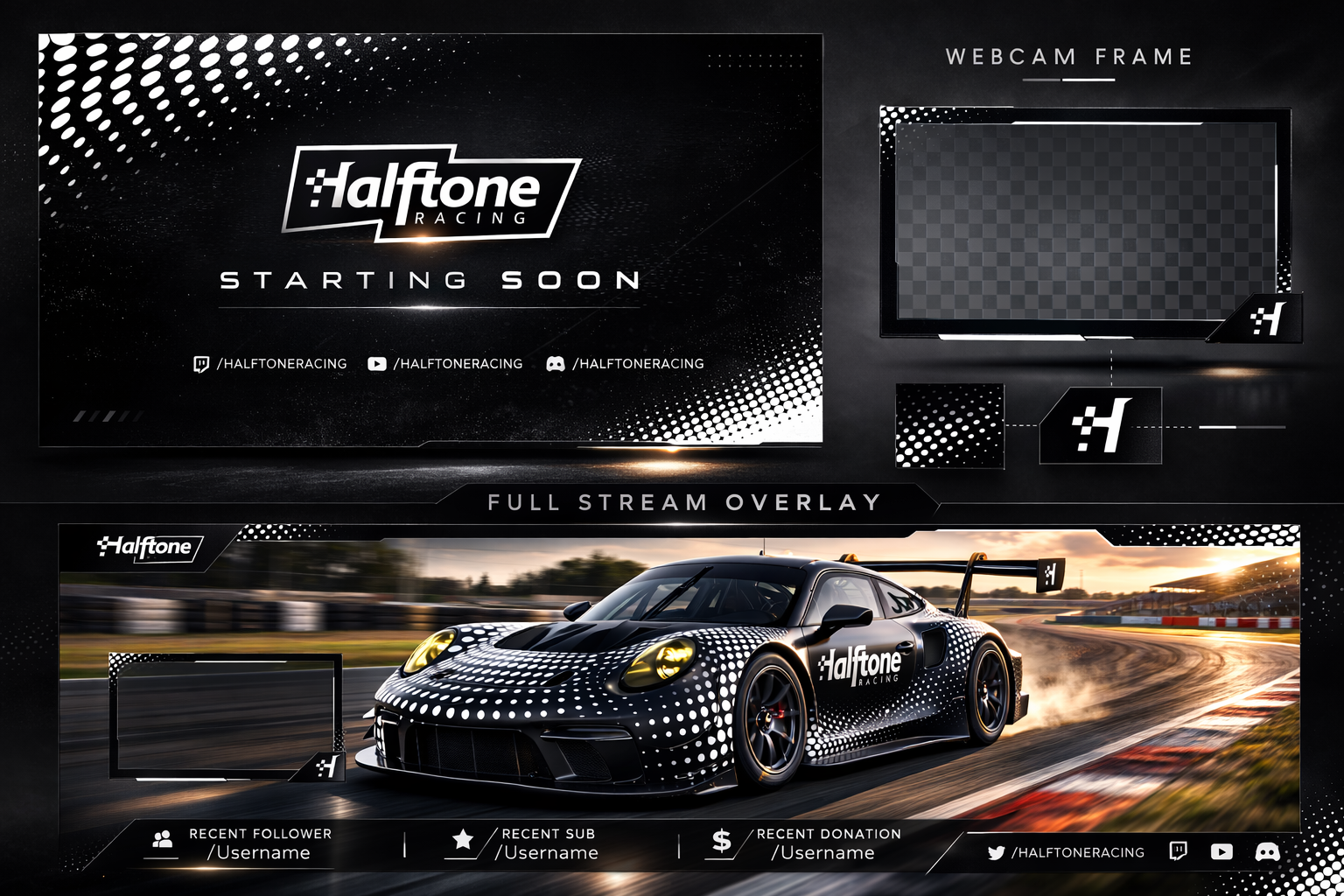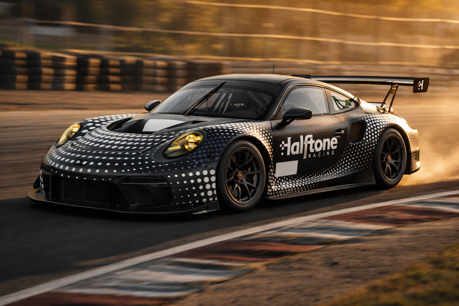 Halftone Racing is a motorsport team that needed a bold brand identity to stand out on and off the track. I designed the complete identity system from logo to livery.